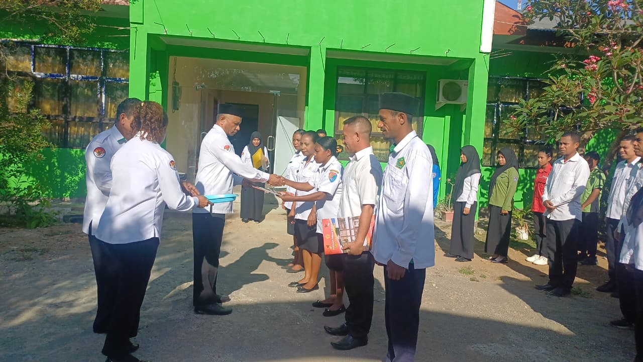 Dalam kesempatan ini, Kakankemenag menyerahkan Sertifikat Pendidik kepada empat orang guru Pendidikan Agama Katolik yang telah selesai mengikuti Pendidikan Profesi Guru (PPG) pada Lembaga Pendidik Tenaga Kependidikan (LPTK), Sekolah Tinggi Santo Yakobus Merauke. Ke empat guru penerima sertifikat tersebut adalah Emanuel Muti Seran (Guru SMP N 4 Kalabahi),, Agnes Mallei Asalang (Guru SD Inpres Maipui), Hildegradis Mardelis Atama (Guru SMP N Apui), Viktoria Kamaleng (Guru SDN Moalmoti). Kakankemenag sendiri menerima SK Kenaikan Pangkat dari dari Pembina IV.a ke Pembina Tk. I/IV.b