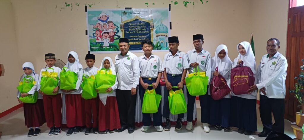 Bantuan tersebut diserahkan langsung oleh Kepala Kantor Kementerian Agama Kabupaten Alor, Mansur Bakri Samah, Kepala Subbagian Tata Usaha Sostenins Namang Djabar, Kepala Seksi Pendidikan Islam Hadi Abdul Aziz Kammis, serta Kepala Seksi Bimbingan Masyarakat Islam (Bimas Islam) Ruslin.